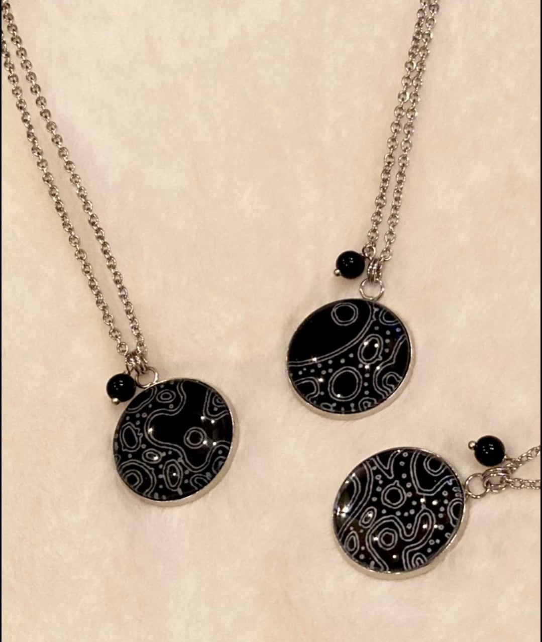 ペンダントには揺れる黒のストーンの一粒。
